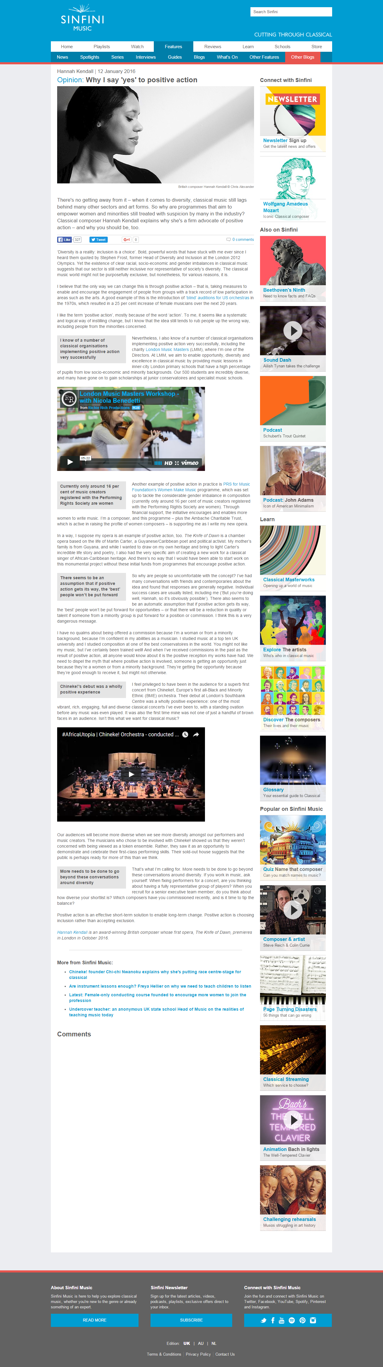 Hannah Kendall oj positive action for Sinfini Music