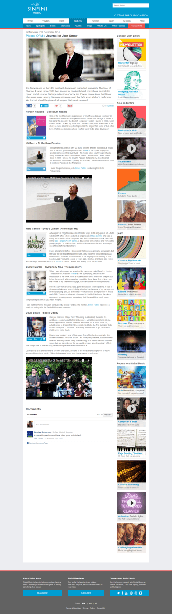 Jon Snow on his relationship with music interview by Christina Kenny for Sinfini Music